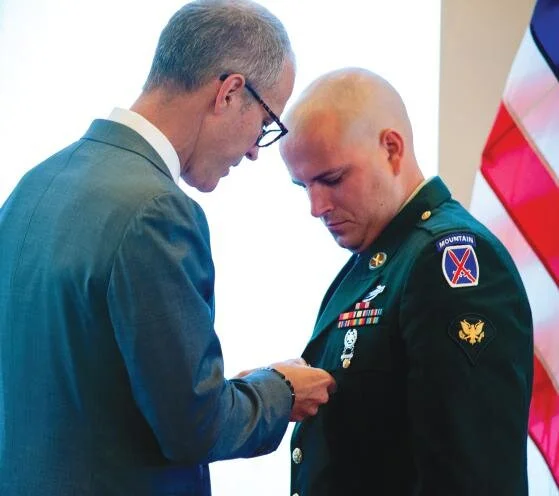 “My head was ringing, and everything was shaking. I couldn’t hear out of my right ear, and my back was hurting. At the time I ignored it, because we were wearing about 60 pounds of gear…. I didn’t know at that point that I had blood pouring out of my ear… after we had airlifted my sergeant out, I was walking back [to the base]…. I got back to the camp and got checked, and I [found out] I had blown out my right eardrum.” Specialist Evans, upon returning home, discovered he had injured his spine.