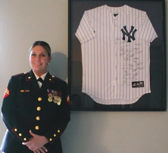 “It took an army of people to make this happen,” a radiant Corporal Leavey marvels, taken totally by surprise by her warm welcome at the airport replete with a fife and drum band furnished by a retired captain and television cameras and lights. Thanks to the caring generosity of the Yankees and Levine, who paid for their round trip flight to California and back, Corporal Leavey’s quest had a happy two-year ending.